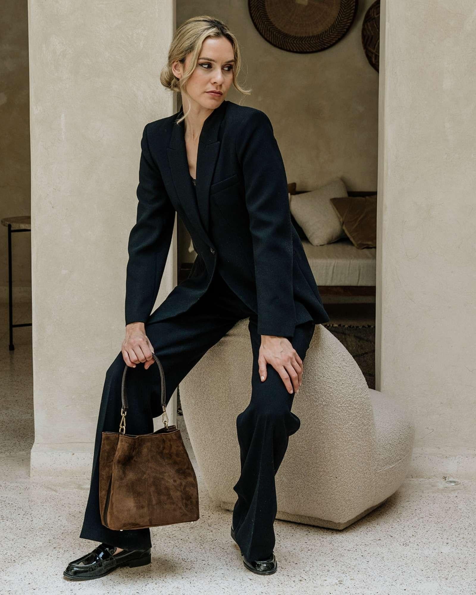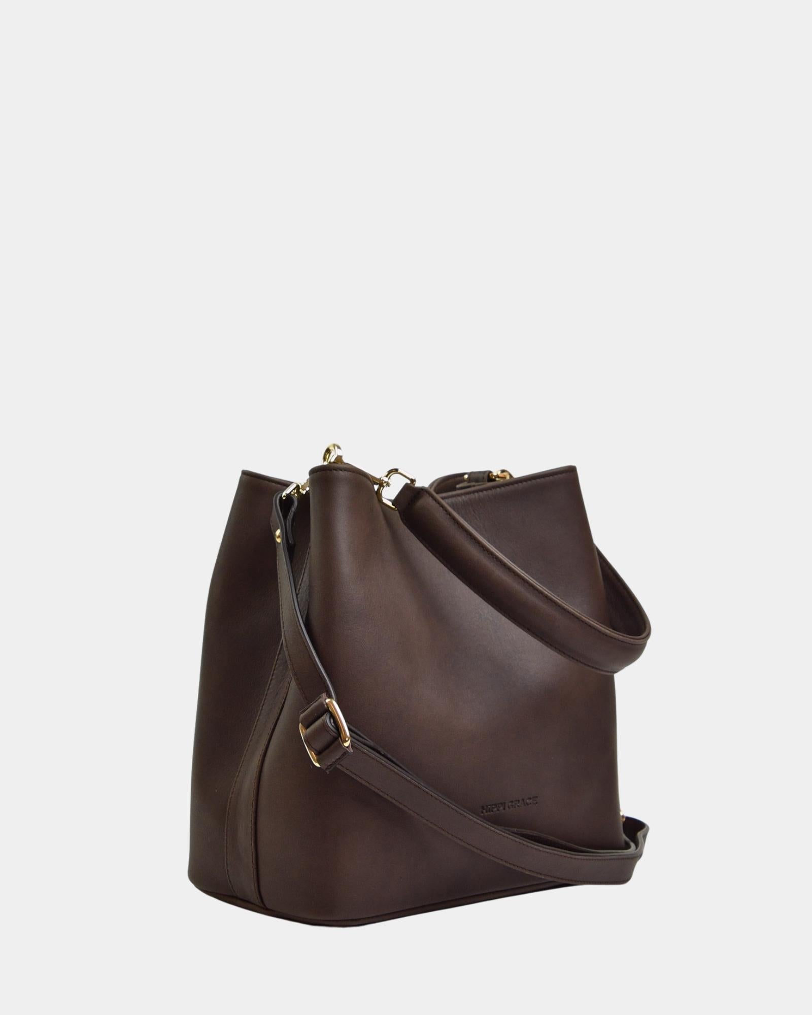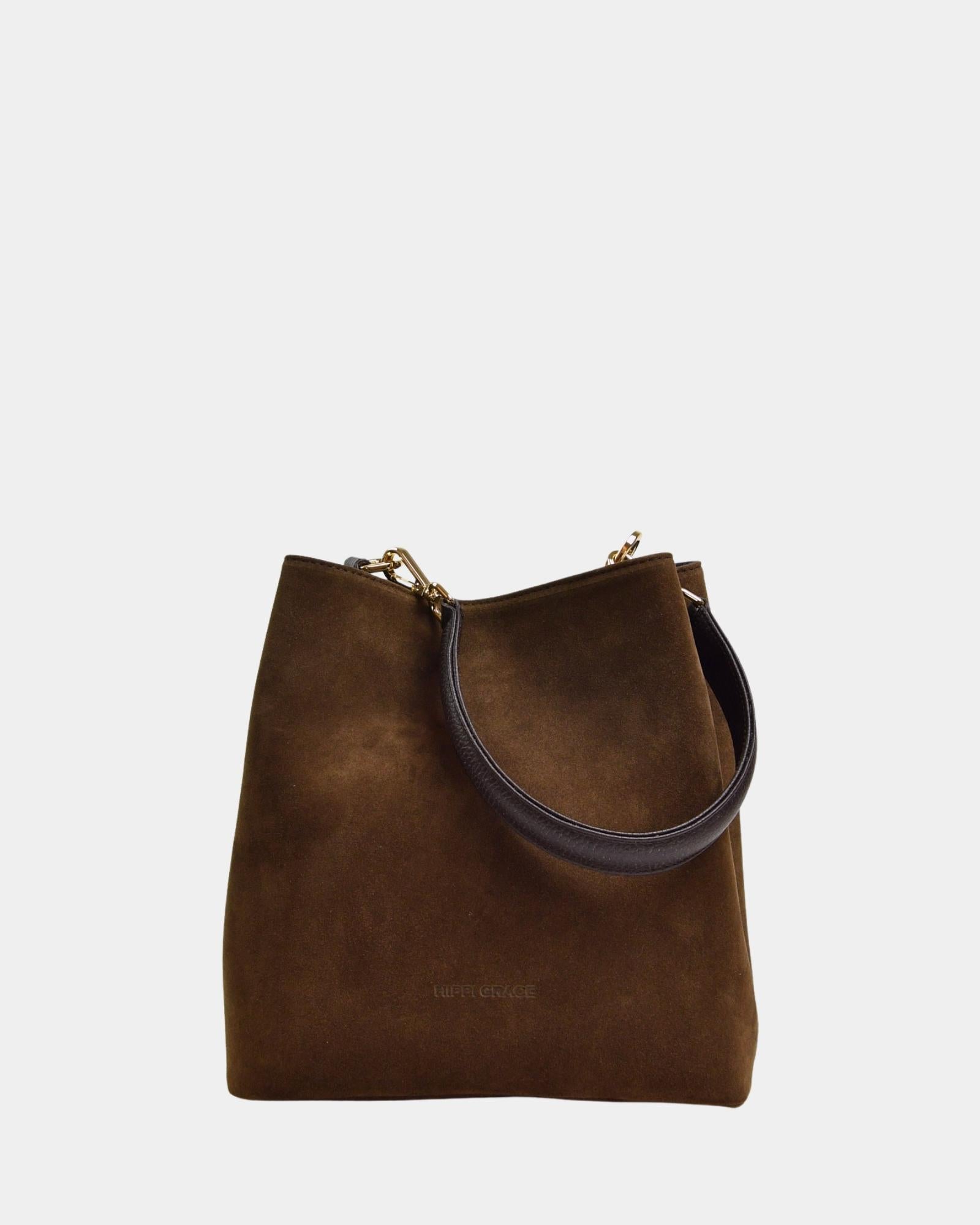![Hippi Grace Bergen New Suede i fargen Mørk Brun med gull . Stor veske til dame i ekte skinn. Stor skinnveske til dame. Stor skulderveske til dame. Jobbveske dame i mørk brun. Skinnveske i mørk brun. Brun jobbveske til dame. Vesken har flettede skulderstropper med gulldetaljer. Den har et romslig hovedrom med glidelås lukking i topp. bag. veske dame i ekte skinn. norsk design. Semsket Skinn. [wv]](http://hippigrace.no/cdn/shop/files/Veske_Hippi_Grace_Bergen_New_Suede_Brun_Modellbilde.jpg?crop=region&crop_height=1024&crop_left=102&crop_top=0&crop_width=819&v=1745414961&width=1024)