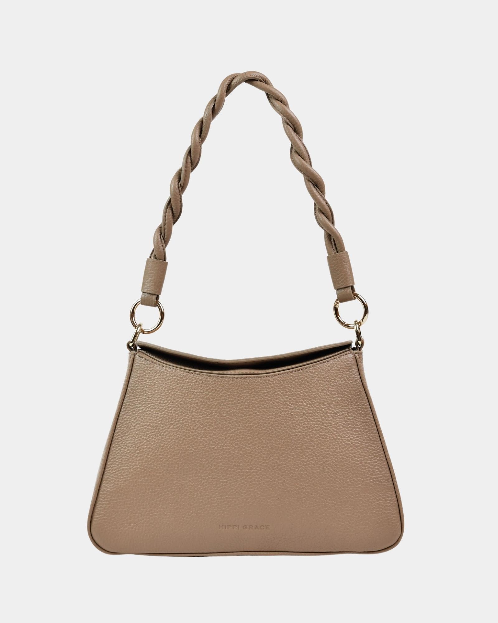 ![Hippi Grace Lucca i fargen bohem luxe tan er en liten skinnveske til dame. Vesken har et minimalistisk og tidløst design, og har et praktisk interiør med glidelås lukking i topp. Skinnvesken kommer med en skulderstropp og en regulerbar crossbody stropp, begge avtagnbare. Norsk Design. Lysebrun skinnveske dame. Brun Veske dame. Hverdagsveske. Festveske. Ekte skinn. Bærekraftig. Skulderveske dame. Crossbody veske dame. Crossbodyveske. Små veske. Mindre veske. Bilde av undersiden til vesken. [wv]](http://hippigrace.no/cdn/shop/files/Lucca-hippi-grace-tan-undersiden.jpg?crop=region&crop_height=2048&crop_left=204&crop_top=0&crop_width=1638&v=1772807320&width=2048)