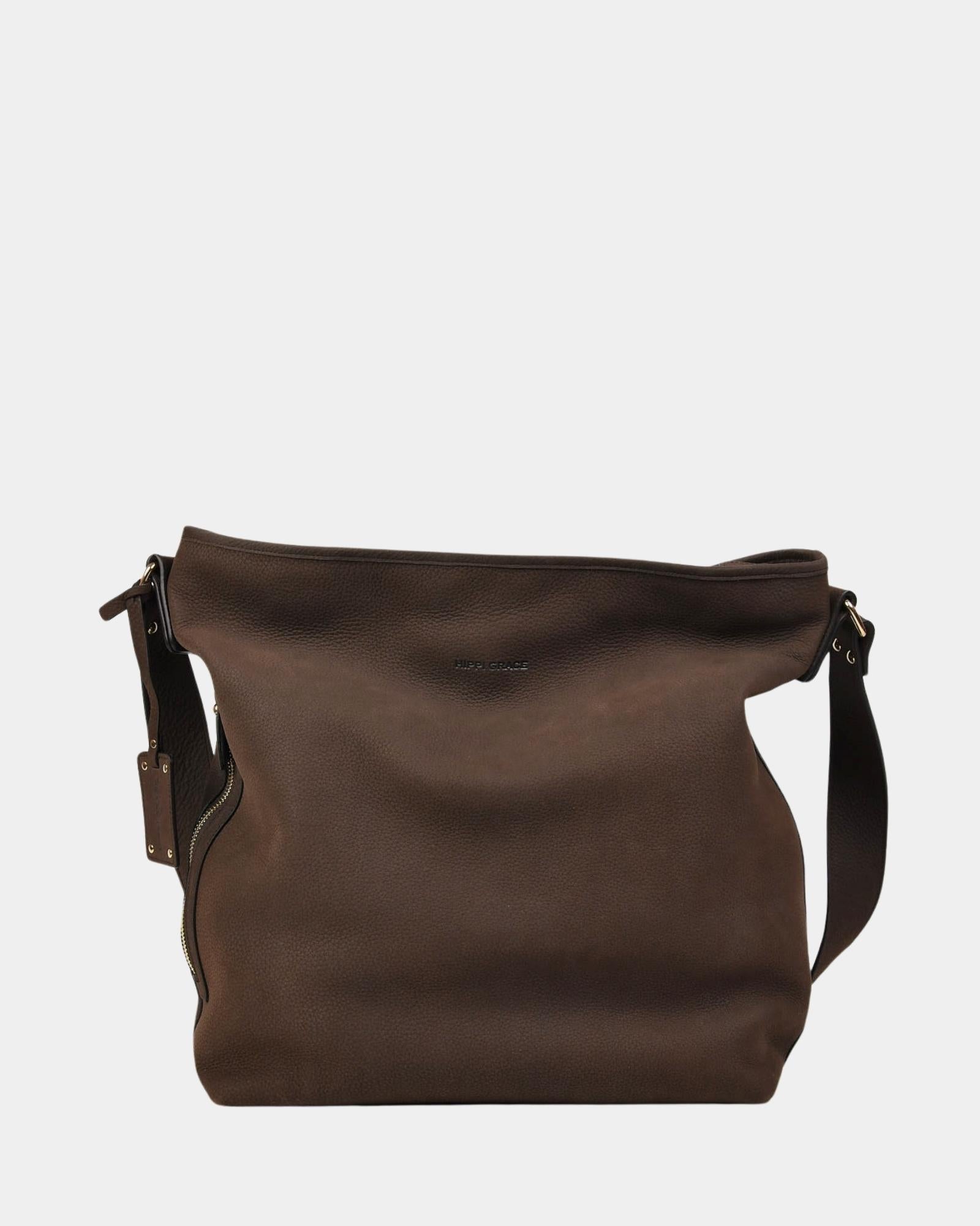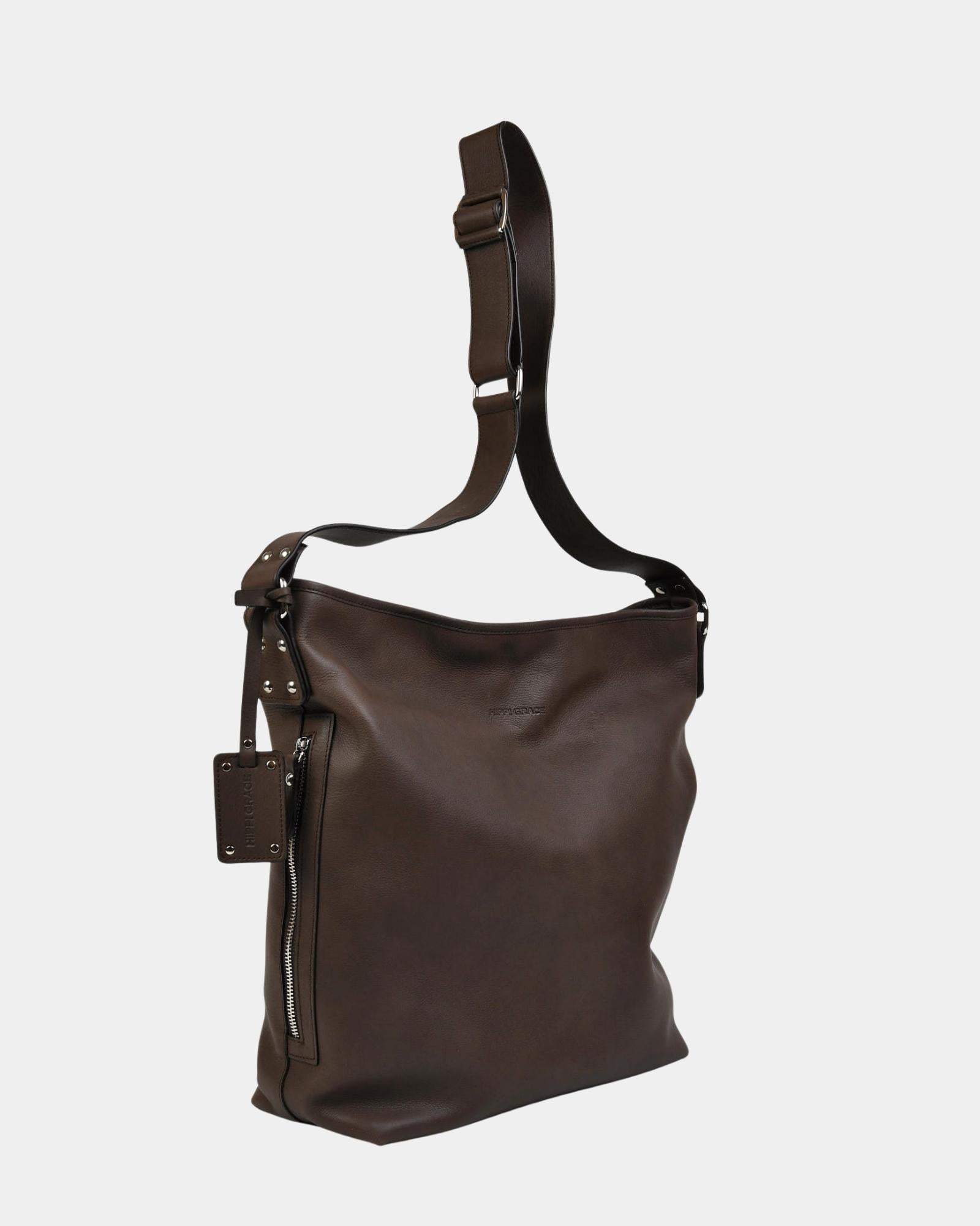 Hippi Grace Amsterdam er en populær romslig og praktisk skinn veske, som passer til jobb, skole, reise eller hverdag. Vesken du kan bruke til alt. Glidelåslukning i topp og regulerbar crossbody skulderstropp. Legg til en flettet rund eller flat kort skulderstropp og Amsterdam er både en crossbody og skulderveske.