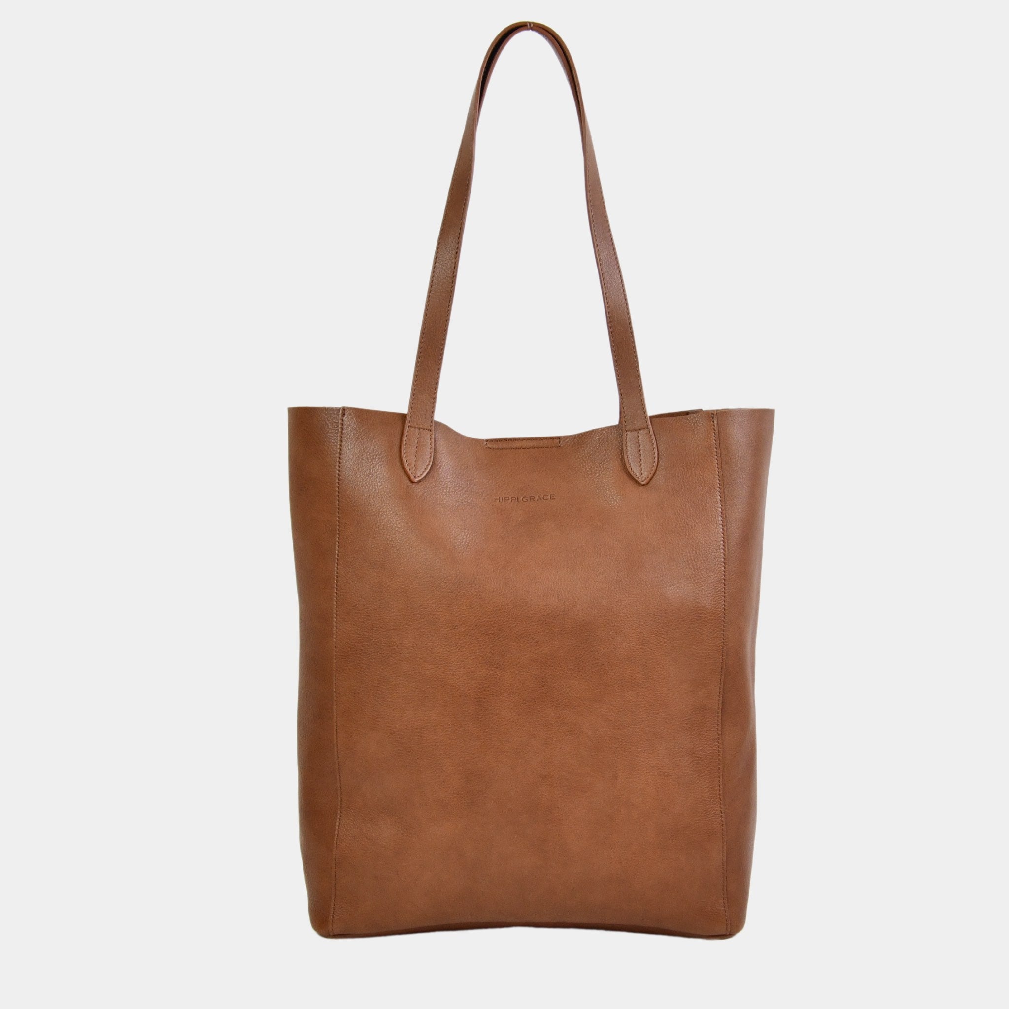 ![Tote veske i lekkert lyse brunt skinn fra Hippi Grace. Tote vesken Stockholm i fargen bohem luxe tan grain fra Hippi Grace er en stor skinnveske til dame. Skulder vesken passer perfekt som jobbveske, skoleveske, reiseveske og hverdagsveske. Vesken har et stilrent design, med et romslig interiør. Vesken lukkes med en metallknapp i topp. Skinnveske dame. Lysebrun tote bag i ekte skinn. Lysebrun skulderveske i ekte skinn. Norsk design. [wv]](http://hippigrace.no/cdn/shop/files/model__Shopper-brun-hippi-grace-stockholm.jpg?v=1754485597&width=2048)