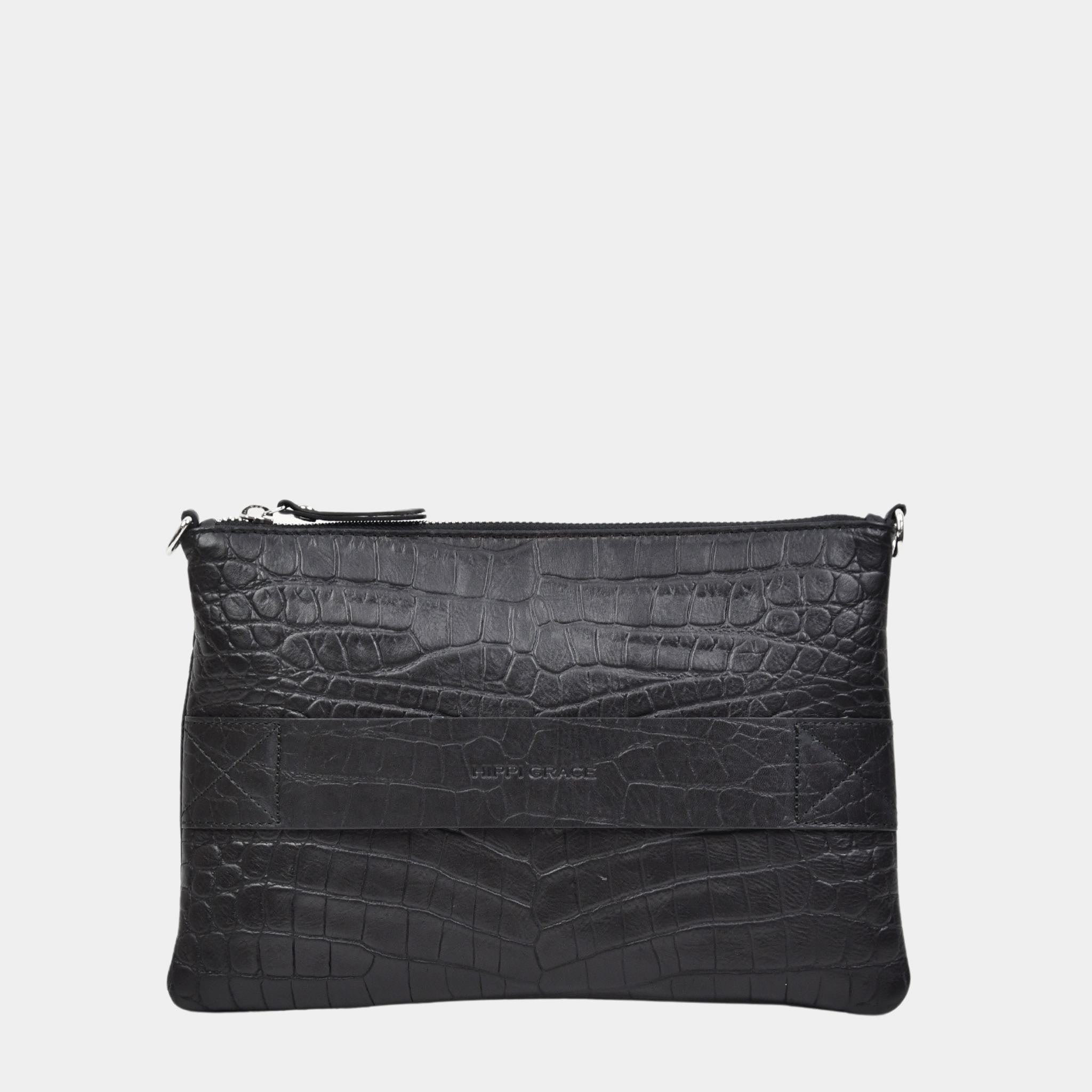 Bær vesken på 3 forskjellige måter. Crossbody, clutch eller i håndledd stropp
