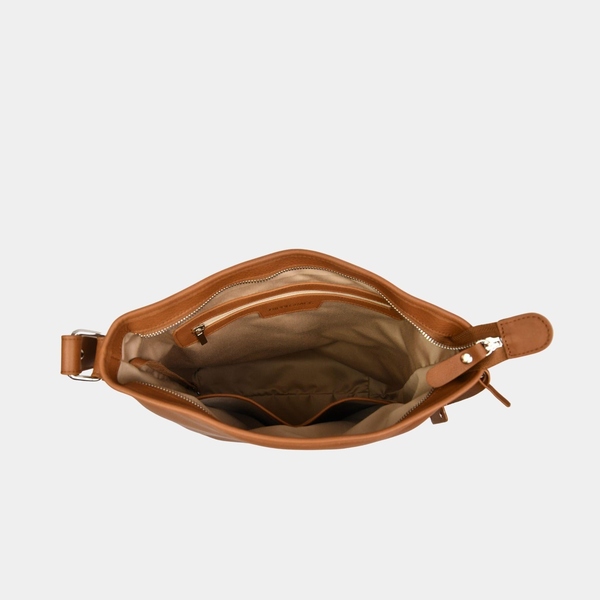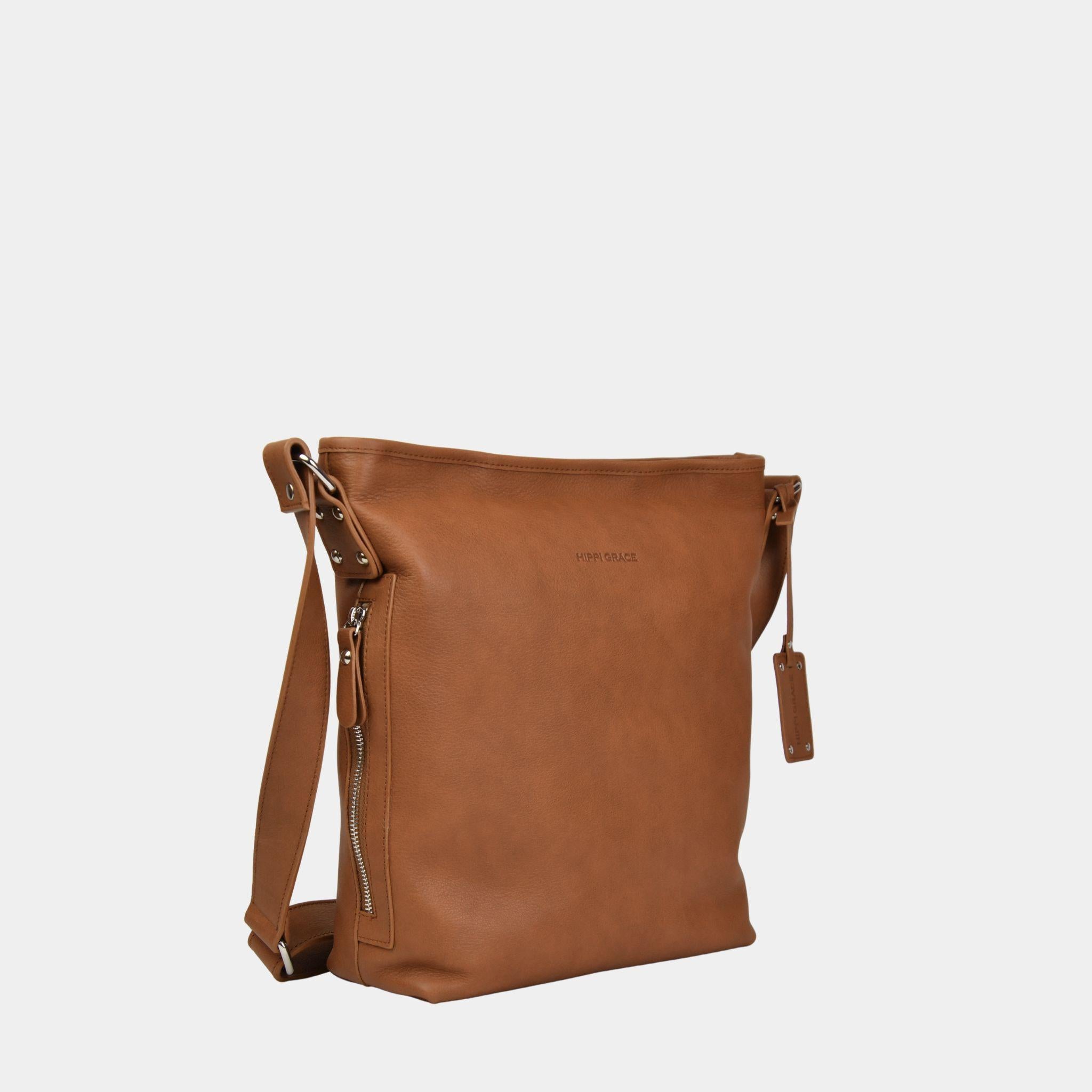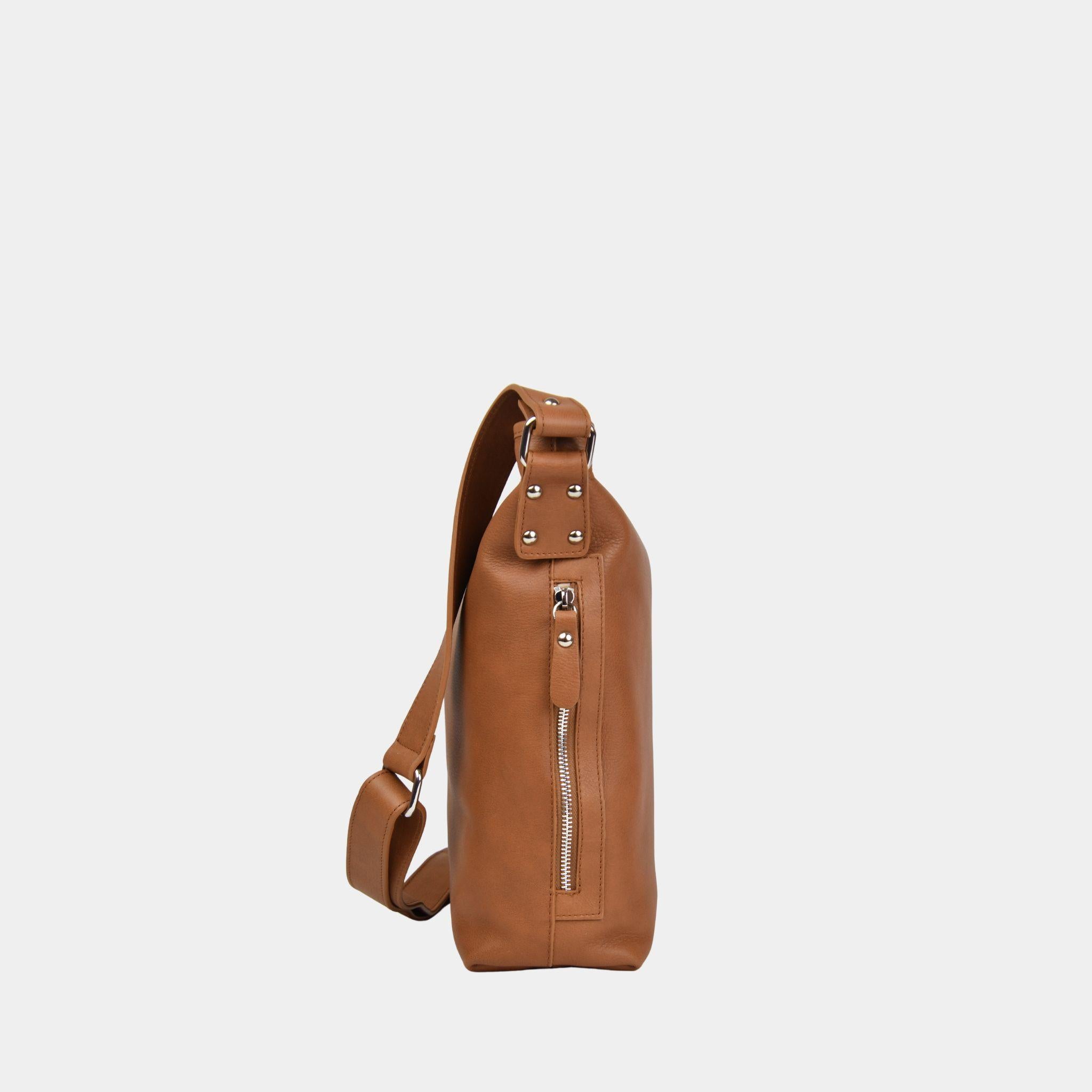 Myk mellomstor crossbody-veske laget av ekte kuskinn fra LWG-sertifiserte garverier. Designet for funksjon og brukervennlighet, med en justerbar skulderstropp. Innsiden har én glidelåslomme og to åpne lommer, samt en praktisk utvendig glidelåslomme. Beige fôr og glidelåslukking i topp. En gjennomtenkt veske for hverdager, reiser og arbeid. Håndlaget i Spania.