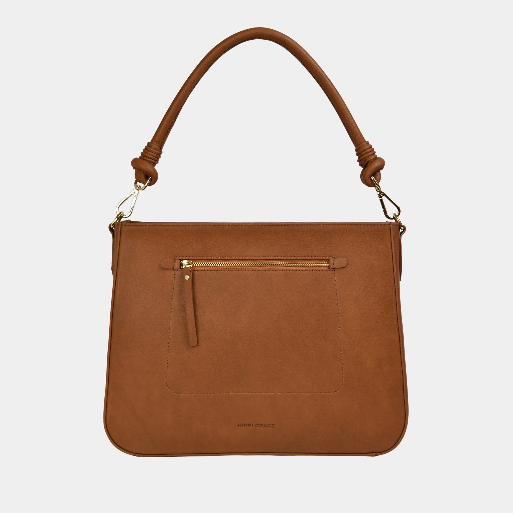 ![Jobbveske, Klassisk Ku-skinn, Skulderstropp, Crossbody stropp, Glidelås-lomme på framsiden, Glidelås-lukning. Hippi Grace Hamption i Bohem Luxe Tan er en stor veske til dame i ekte skinn. Skinnvesken kommer med en skulderstropp og en regulerbar crossbody stropp. Den har er romslig og praktisk interiør med flere lommer innvendig, og glidelås lukking i topp. Hampton har et tidløst og praktisk design, som du aldri går lei av. Den er perfekt til Jobb, skole, reise og hverdag [wv]](http://hippigrace.no/cdn/shop/files/Hampton-Miljobilde.jpg?v=1765209310&width=2048)