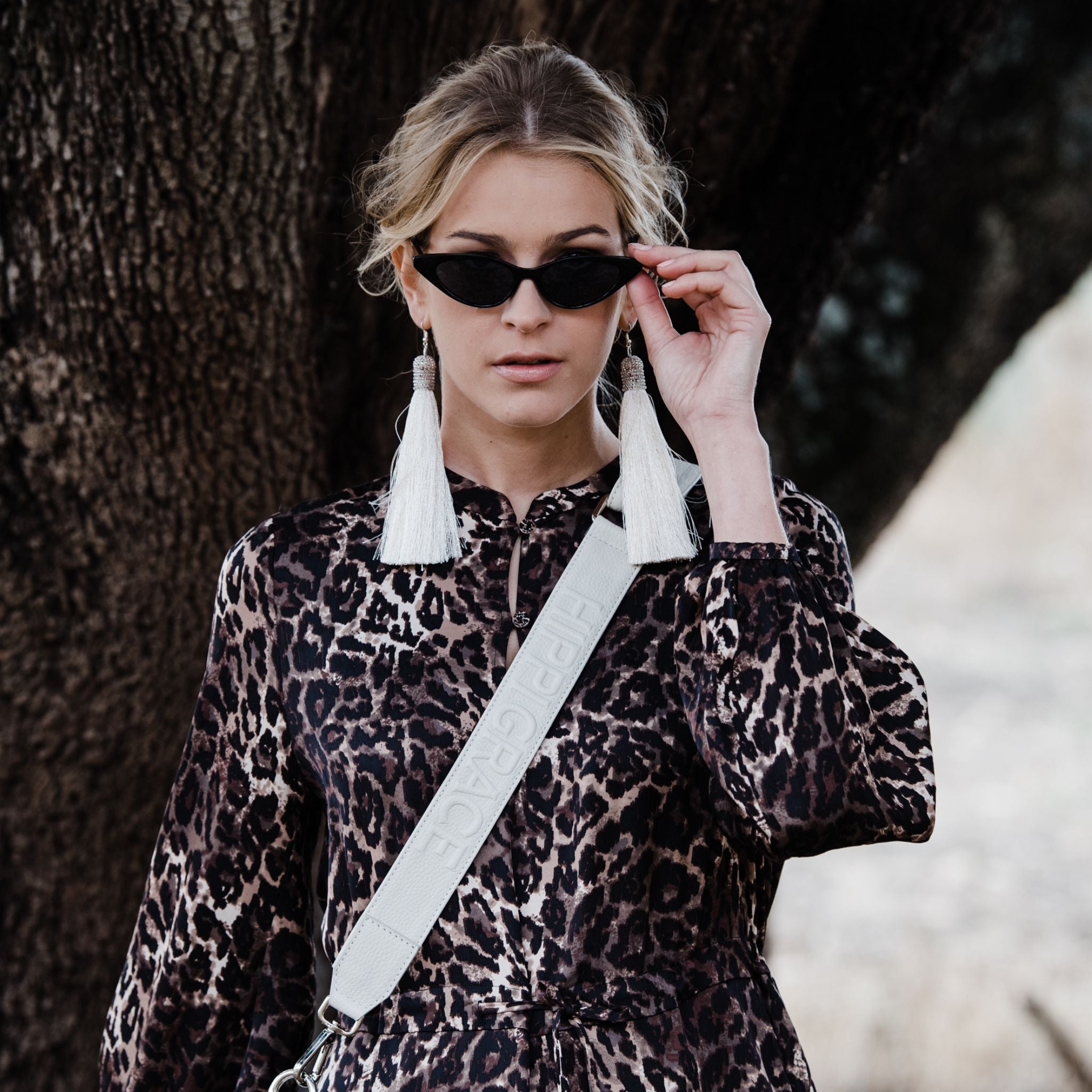 ![[wv] Bred skulderstropp i klassisk Ku-skinn, Crossbody lengde, Preget Logo. Hippi Grace Preget Stropp i Klassisk Offwhite. Ekte skinn. Skinnstropp til veske i ekte skinn. Norsk Design. Bilde på modell.](http://hippigrace.no/cdn/shop/files/crossbody-strap-hippi-grace-1_2m.jpg?v=1688663609&width=2048)